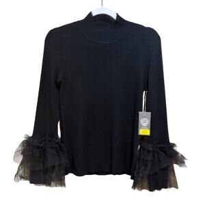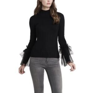 NWT Vince Camuto Black High Mock Neck Ruffle Sleeve Blouse Top Size Medium NEW