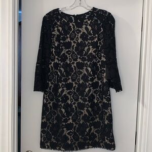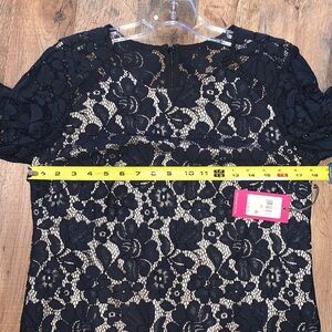 NWT Vince Camuto Black Lace Dress with Nude Underlay. 3/4 sleeve. Fully lined.