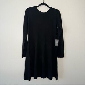 NWT Vince Camuto Black Sweater Dress Fit & Flare Long Sleeve Open Back Bow M