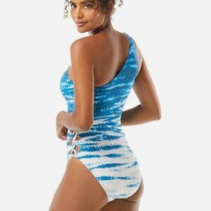 NWT! Vince Camuto Blue Azure Tie Dye One Shoulder One Piece Swimsuit NEW!