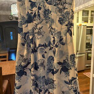 NWT Vince Camuto Blue and White Floral Scuba Knit Fit & Flare Dress. Size 10