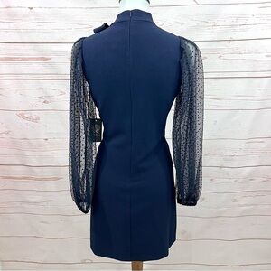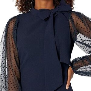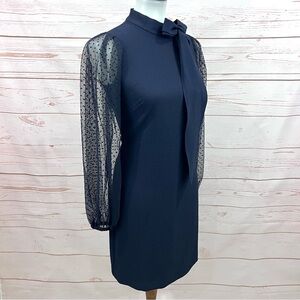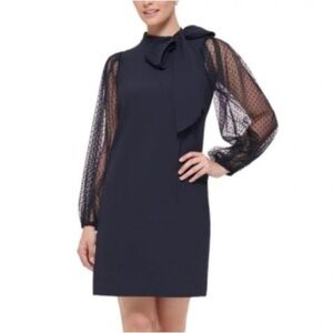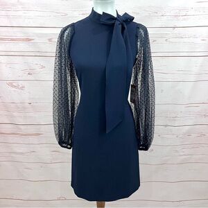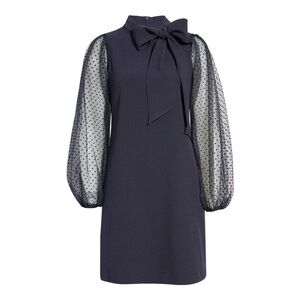NWT Vince Camuto Bow Neck Sheer Puffy Polka Dot Long Sleeve Shift Dress