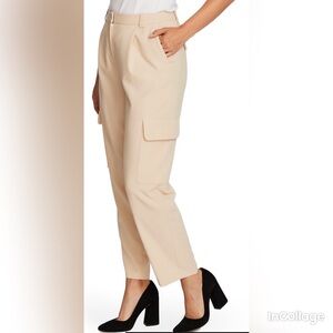 New with tag, Vince Camuto cargo pants, With a tailored nod to utility style, these twill trousers can take you from work to weekend with casual ease. Zip fly with hook-and-bar closure. Front slant pockets, cargo flap-patch pockets, back flap pockets, 63% polyester, 31% viscose, 6% elastane. Dry clean or machine wash.