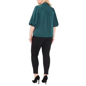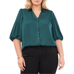 NWT Vince Camuto Collared Button Down Balloon Sleeve Blouse in Deep Forest 3X