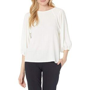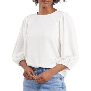NWT Vince Camuto Crinkled 3/4 Puff Sleeve Round Neck Top in New Ivory Sz. 2X