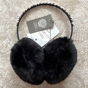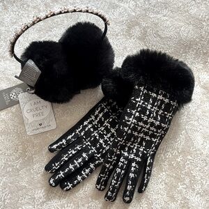NWT Vince Camuto Faux Fur Earmuffs w/ Beaded Embellished Headband & NWT Marcus Adler Black & White Tweed Gloves. Such a gorgeous, classy set!