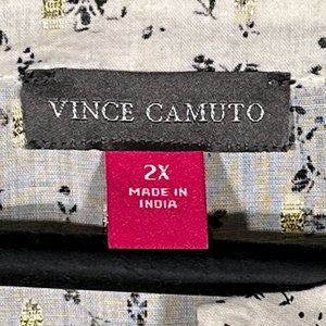 NWT Vince Camuto Floral Print With Gold Accents 3/4 Roll Tab Sleeve Tied Button Front Blouse Size 2X