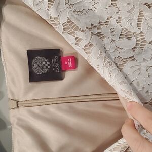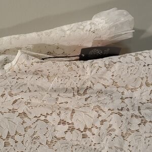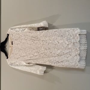 NWT Vince Camuto Lace& Flock Dot Mesh 3/4 Sleeve Shift dress