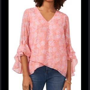 NWT Vince Camuto Orange Coral Floral Flutter Sleeve Blouse