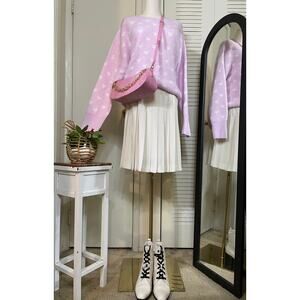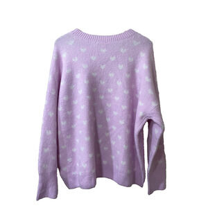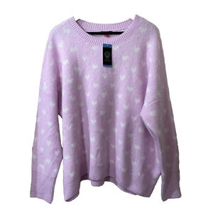 NWT Vince Camuto Pink Valentine Sweater With White Hearts AZALEA ICE Size L
