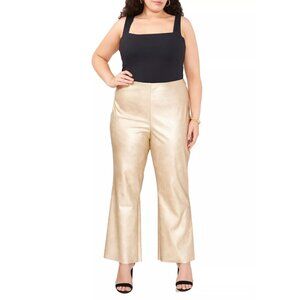 NWT Vince Camuto Pull-On Metallic Faux-Leather Flare Pants in Soft Gold