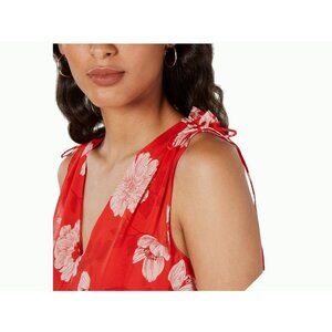 New With Tags Vince Camuto Red Floral Midi Dress Feminine Flowy Ruffles Sleeveless Size 8