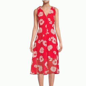 NWT Vince Camuto Red Floral Midi Dress Feminine Flowy Ruffles Sleeveless Size 8