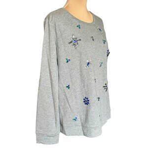 NWT Vince Camuto Rhinestone Sweatshirt Top Sz.L Gray Embellished Cotton Preppy
