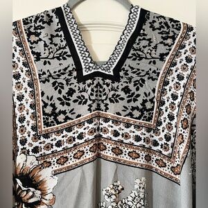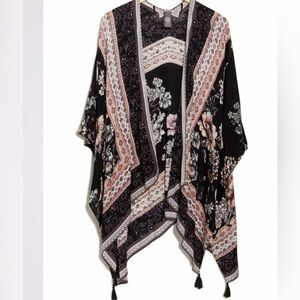 NWT brand new! Never worn. Beautiful neutral colors, black with multi patterns by Vince Camuto. Kimono style. Open sleeve, open front. Edge details. Rayon. “Ruana” wrap, lightweight. Add layers to any outfit, or use as a swim coverup. Measurements in photos. Women’s OS. Smoke free home