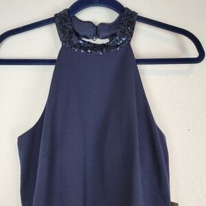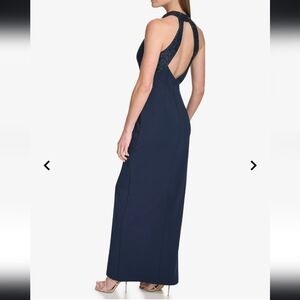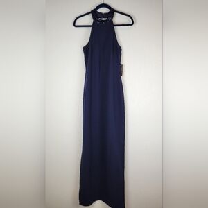 NWT Vince Camuto Sequined Embellished Halter Column Gown in Navy Size 4