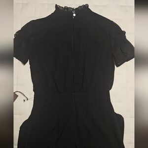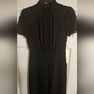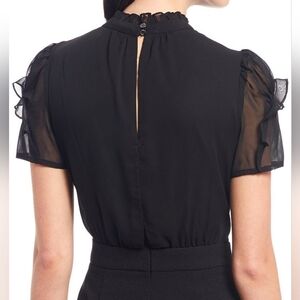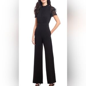 NWT Vince Camuto Short Sleeve Mock Neck Chiffon Bodice Jumpsuit: Black: Size- 0