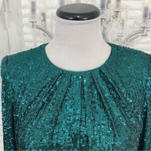 NWT Vince Camuto Size 6 Green 3/4 Balloon Sleeve Crew Neck Sequin Dress Sheath
