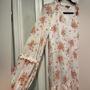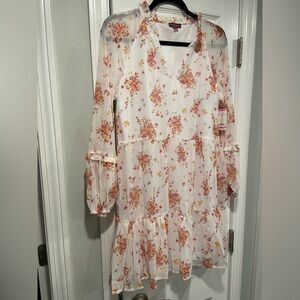 NWT Vince Camuto Size S White Floral Ruffle Flowy Long Sleeve Sheer Mini Dress