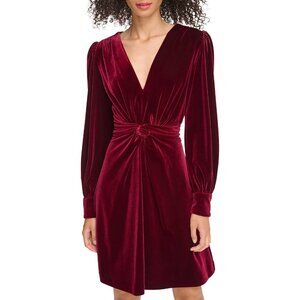 NWT Vince Camuto Velvet Twist-Front Long Sleeve Mini Dress in Wine Sz. 0