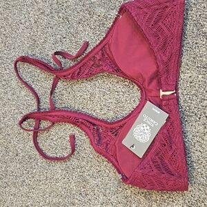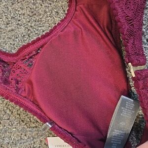 NWT Vince Camuto Women Elegant Spring Lace Bralette in Burgundy Swim Top Sz S