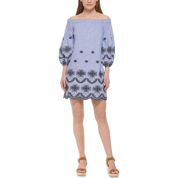 NWT Vince Camuto Womens Eyelet Mini Shift Dress VC2M3685 14 Blue