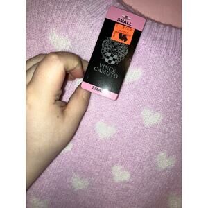 NWT Vince Camuto light pink and white heart knit sweater size small oversized