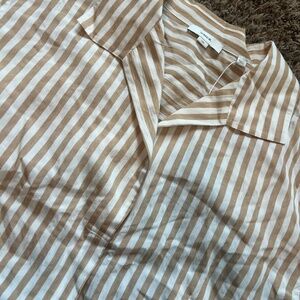 NWT Vince Coastal Stripe Shaped-Collar Shirt size large tan and white stripe