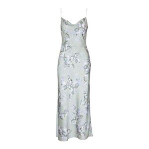 NWT Vince Hazy Blossom Cowl Neck Satin Floral Slip Dress in Celery Women's 2