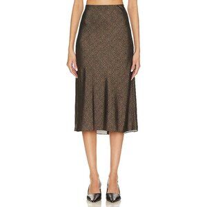 NWT Vince Houndstooth Bias Slip Midi in Black Camel A-line Skirt 10 $395