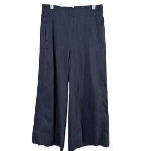 NWT Vince Navy Blue Linen Blend High Rise Wide Leg Cropped Pants Women’s Size 0