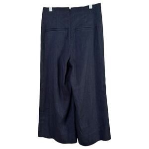 NWT Vince Navy Blue Linen Blend High Rise Wide Leg Cropped Pants. Flattering high rise with a flat front and pockets. Breathable yet stretchy linen blend. Easily dressed up or down. Hidden back zipper closure.
