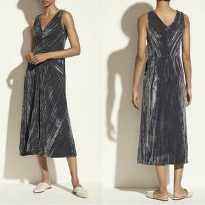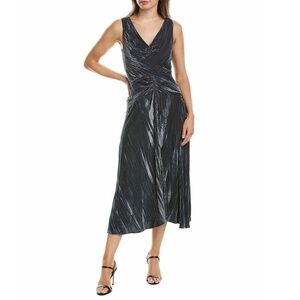 NWT Vince Ruched Textured Velvet Sleeveless Midi Dress in Azure Sz. 10