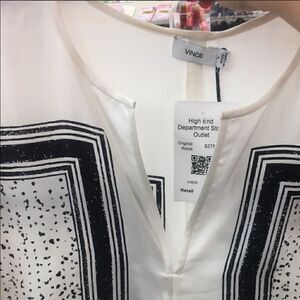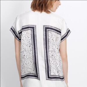 NWT Vince oversized silk scarf print blouse sz small. Navy and slight off white.