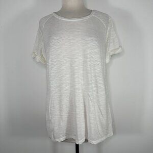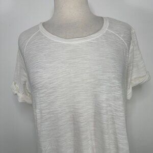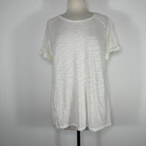 Vince. White Boat Neck Short Sleeve Cotton Roll Sleeve T-Shirt Sz L MSRP $69