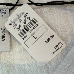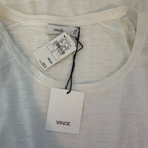 NWT Vince. White Boat Neck Short Sleeve Cotton Roll Sleeve T-Shirt Sz L MSRP $69