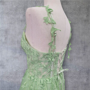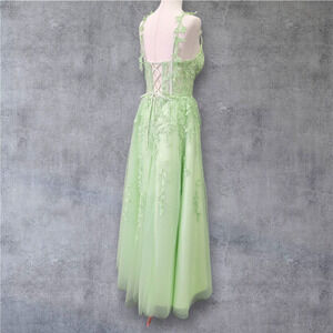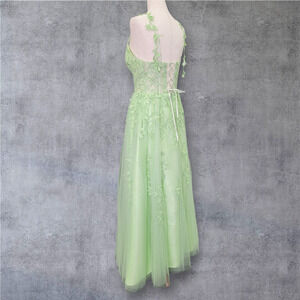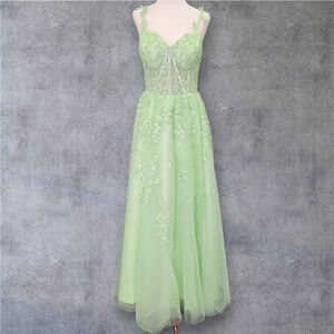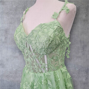 NWT Vine Dress with Semi-Sheer Bodice Corset Back Tulle Light Green Sparkle