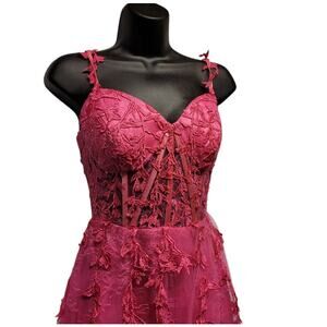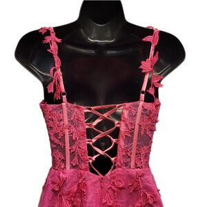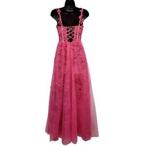 NWT Vine Dress with Semi-Sheer Bodice Corset Back Tulle Skirt Hot Pink
