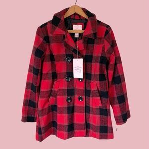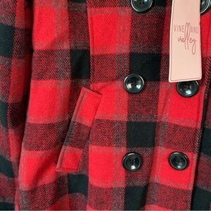 NWT Vine and Valley Girl’s Red & Black Plaid Pea Coat