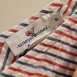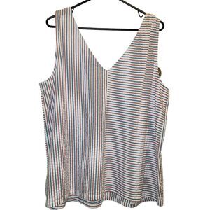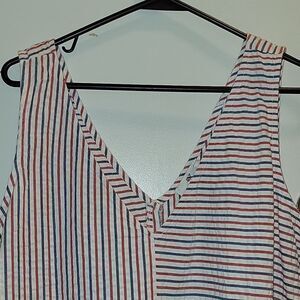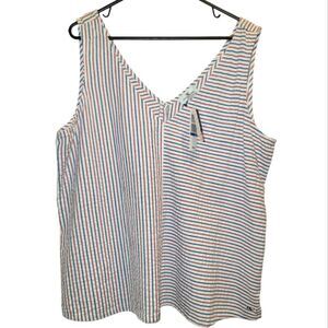 NWT Vines Fireworks Seersucker Striped Red White Blue Tank Top XL 100 Cotton