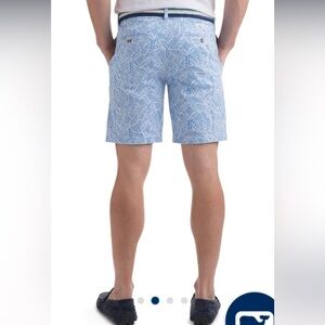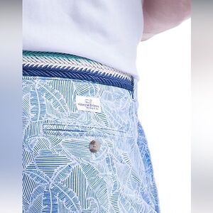 Style profile: preppy classic flat front belted cotton stretch marlin blue white print logo vineyard vines shorts new with tags beach tropical nautical classic marlin palm vacation beach travel