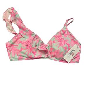 NWT Vineyard Vines Bougainvillea Ruffle Bikini Top in Crystal blue/Pink Size L