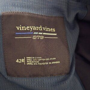 Vineyard Vines On the Go Lightweight Blazer Jacket. This is blue and brand new with tags. It is a size 42R. Armpit to armpit measures 22.5 inches and shoulder to hem is 30.5 inches.