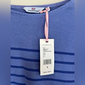 NWT Vineyard Vines Overdyed LS Stripe Knit Cotton Mini Dress, Marlin Blue, S