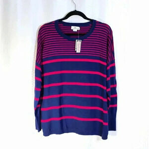 NWT Vineyard Vines Size XL Striped Relaxed Sweater/Deep Bay blue/red long sleeve