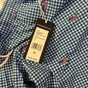 New with tags, never worn. Vineyard Vines Swim Trunks. Chappy print. Size XL (16).