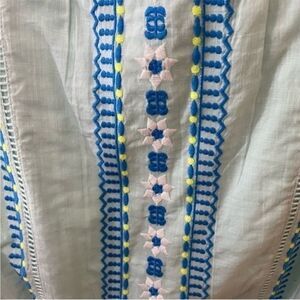 · Delicate embroidery down the front with ladder lace trim that's styled with fringe