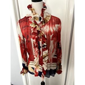 NWT Vintage Roberto Cavalli Silk red blue Mousseline Ruffled Blouse Weightless Silk IT40