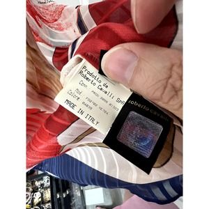 NWT Vintage '06 Roberto Cavalli Silk red blue Mousseline Ruffled Blouse Sz S
