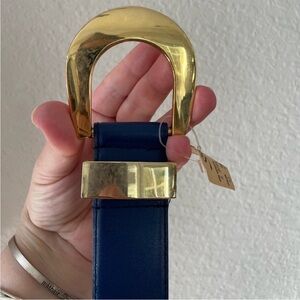 NWT Vintage 80’s Gold Buckle Blue Leather Belt